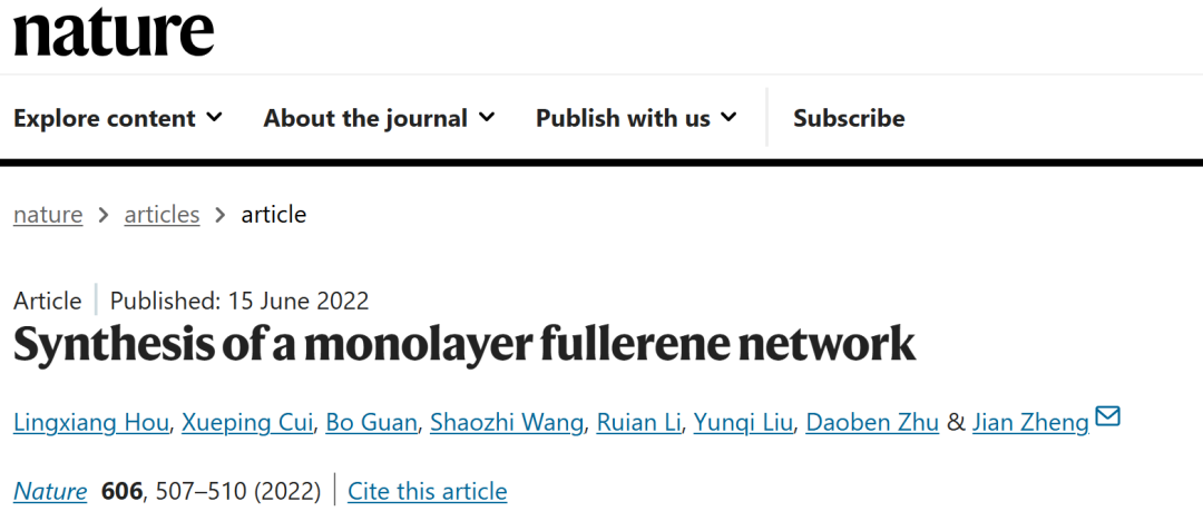 Lingxiang Hou, Xueping Cui, Bo Guan, Shaozhi Wang, Ruian Li,Yunqi Liu, Daoben Zhu, Jian Zheng. Synthesis of a monolayer fullerene network. Nature. 2022.